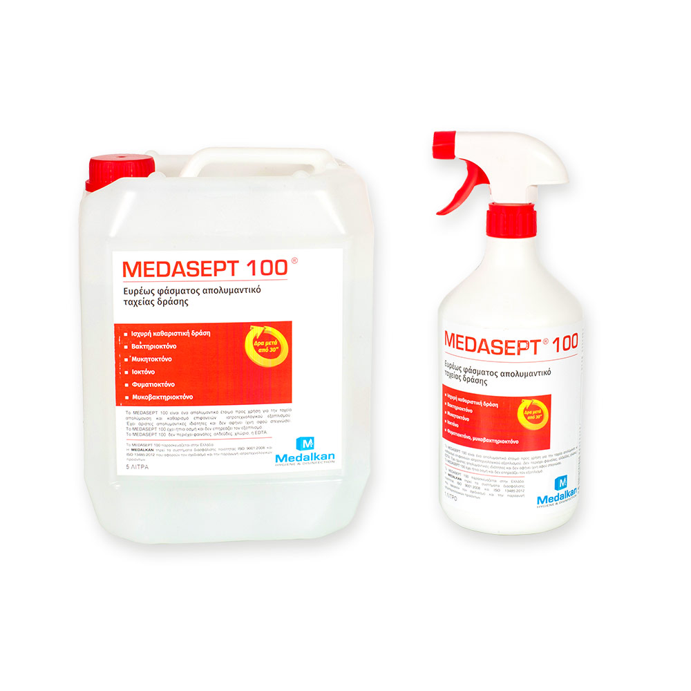 MEDASEPT 100 is recommended for the disinfection of surfaces in direct contact with patients and healthcare personnel, including work surfaces, examination tables, dental units, handles, spittoons, and similar equipment.